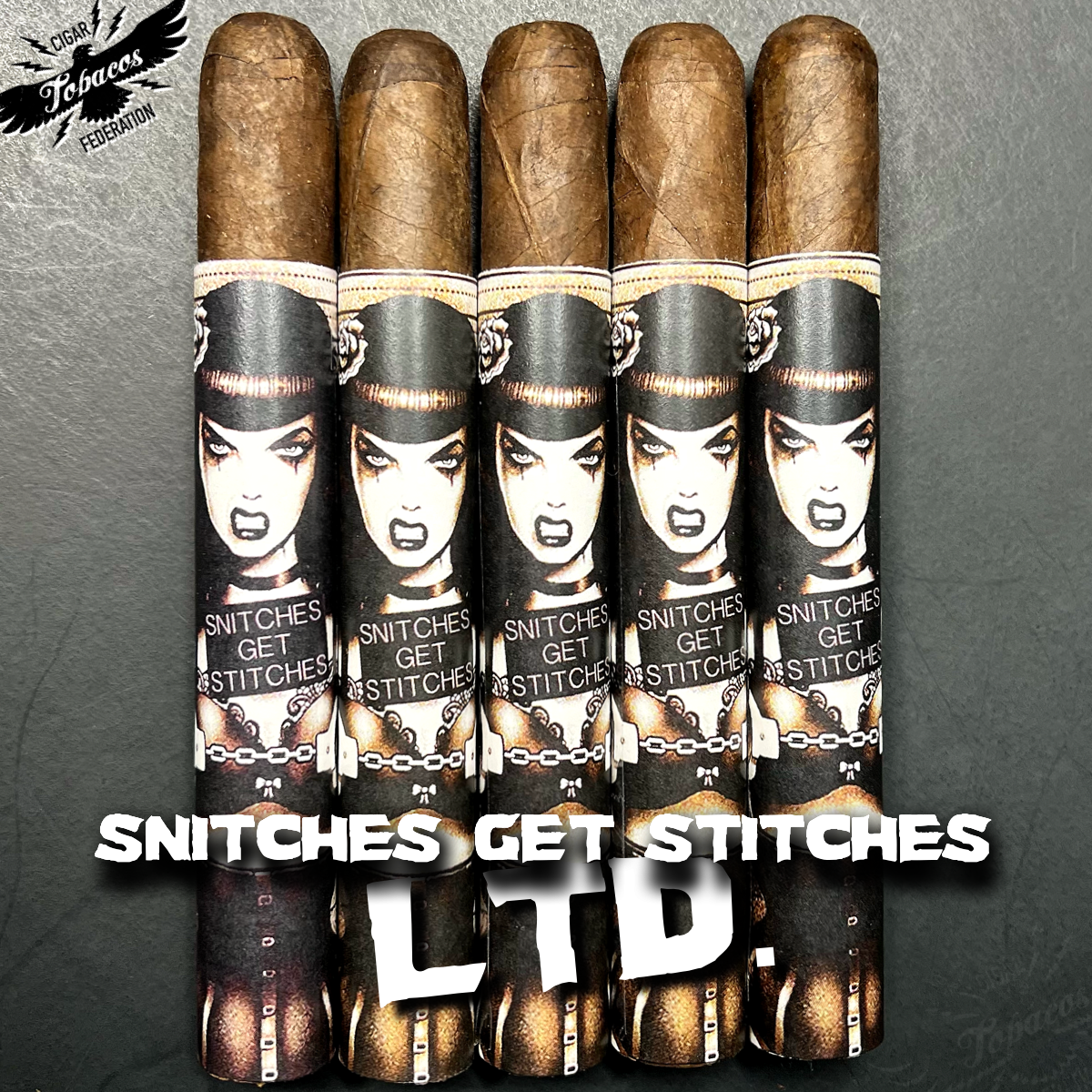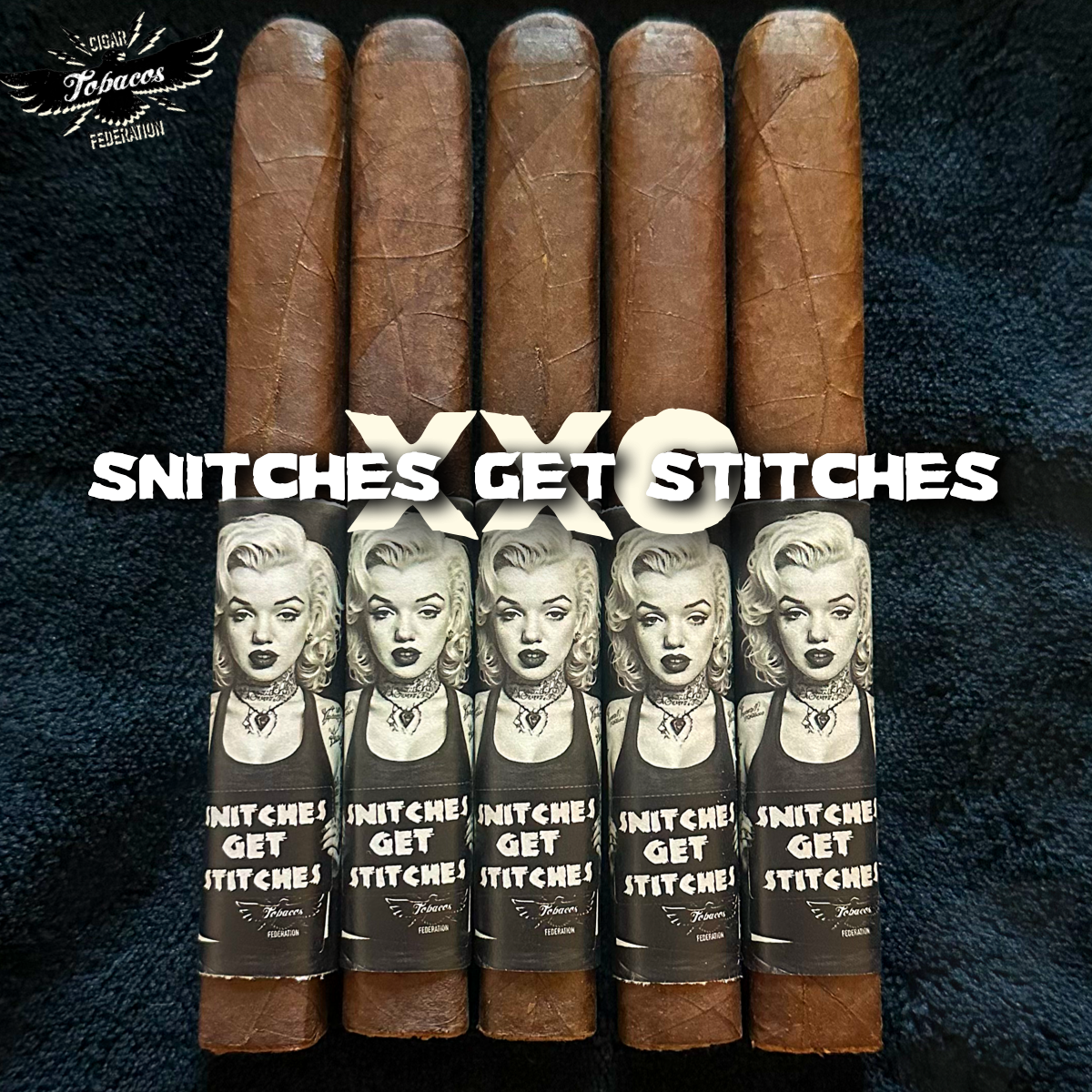 So, SNITCHES GET STITCHES XXO is a tribute to all the super secret, cloak and dagger, behind-the-scenes stuff we do to get all this phenomenal tobacco.