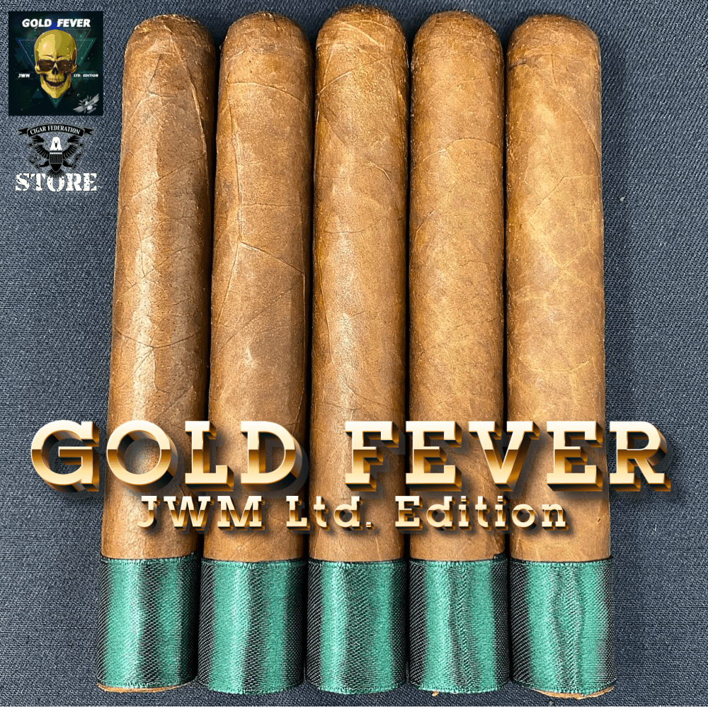 GOLD FEVER JWM Ltd. Edition is a full-bodied, medium-strength 5.5x54 super robusto. Wrapper is a flawless Ecuadorian Habano leaf. Binders and fillers will remain undisclosed. 😎