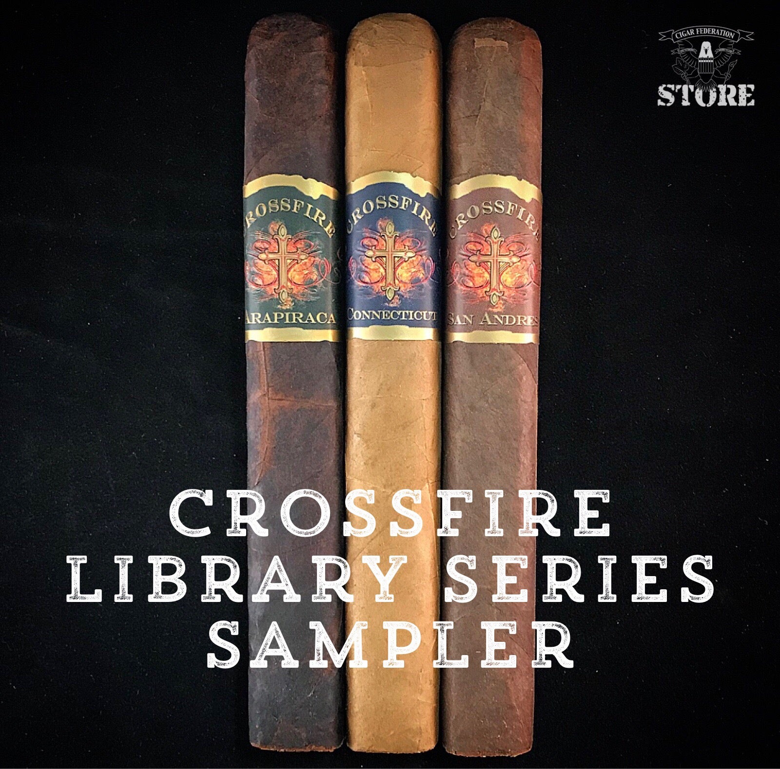 The Crossfire Cigars Library Series Sampler features the 3 blends that Crossfire released in their Library Series. The Library Series was the company's last project (debuting in 2015) and is their most exclusive and most expensive releases.