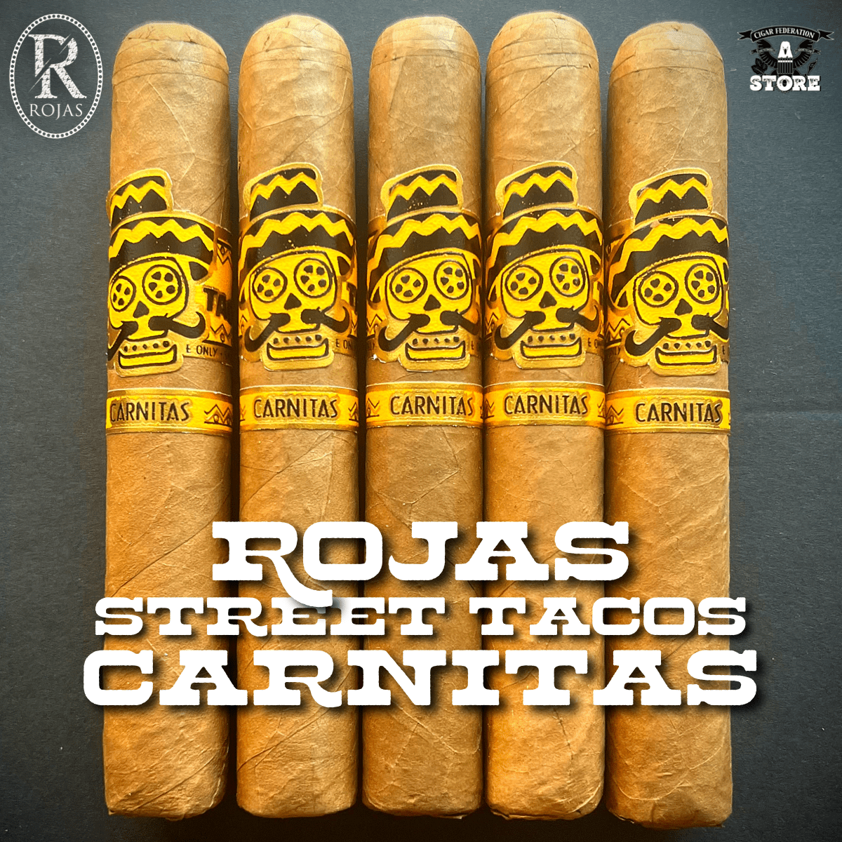 ROJAS STREET TACOS CARNITAS uses a Connecticut wrapper over Nicaraguan binder and filler. Full-bodied, medium-strength.