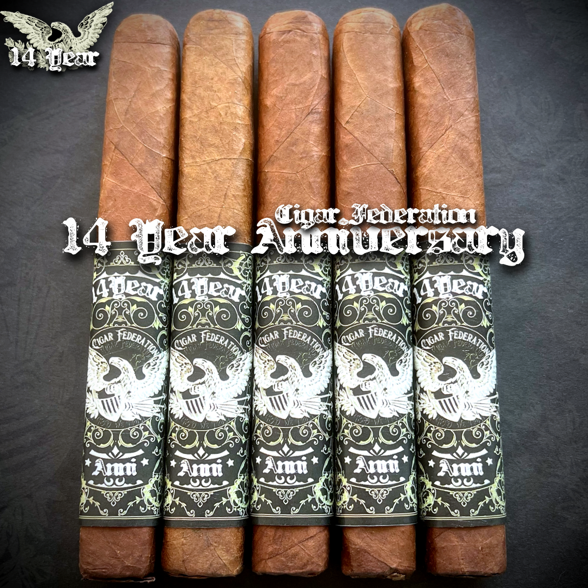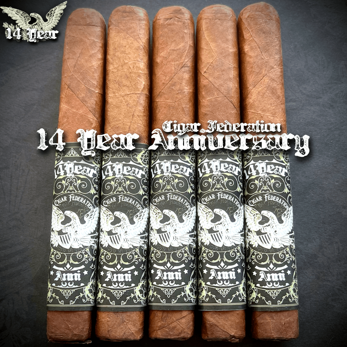 14 YEAR ANNIVERSARY is the greatest Cigar Federation Tobacos release in history. Fourteen years of chaos, friendships, epic smokes, and late-night rants distilled into one cigar!