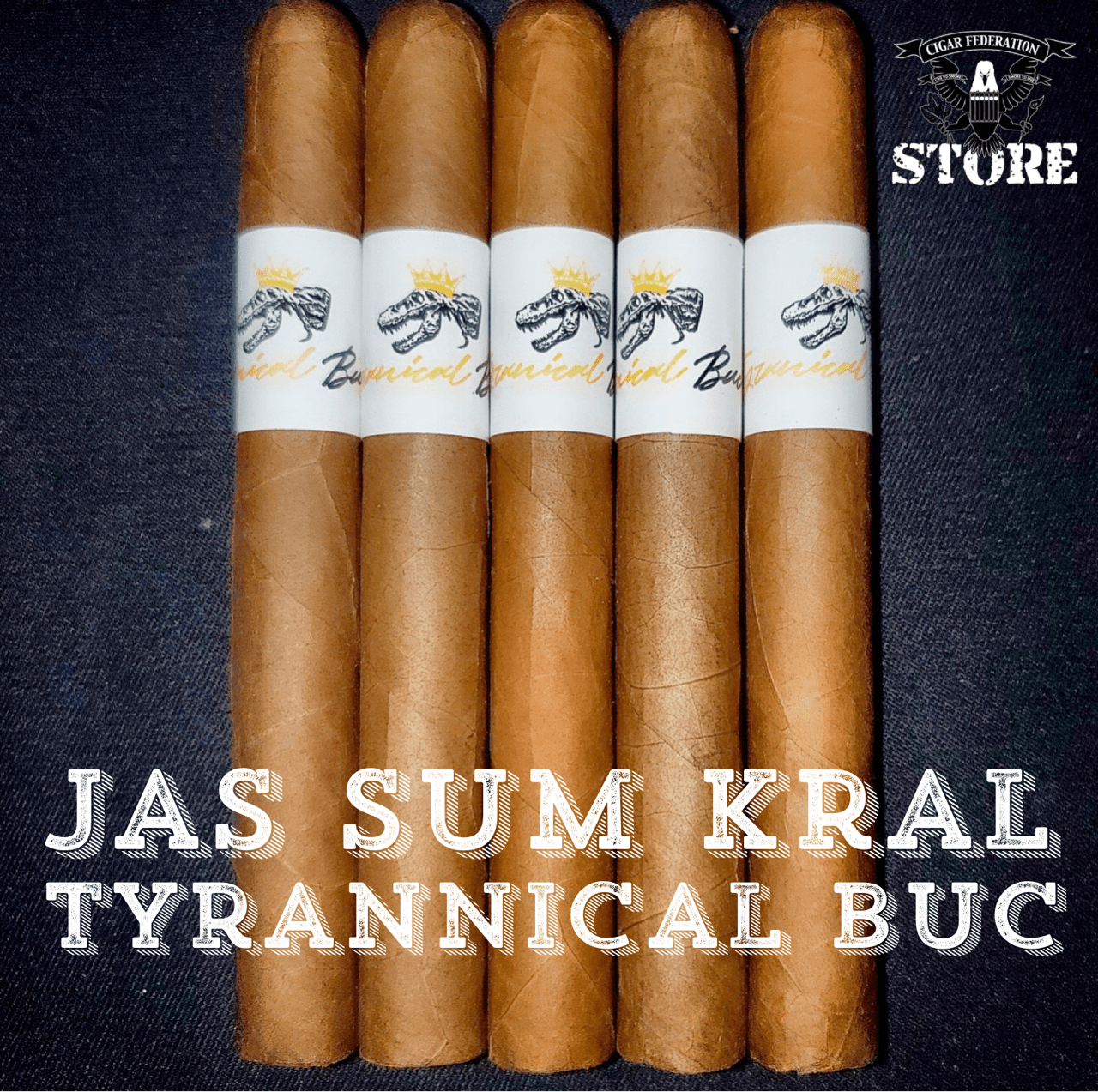 The Jas Sum Kral Tyrannical Buc Maduro is wrapped in a chocolatey Connecticut Broadleaf maduro leaf. Binder from Jalapa and fillers from Condega and Estelí and Pennsylvania.