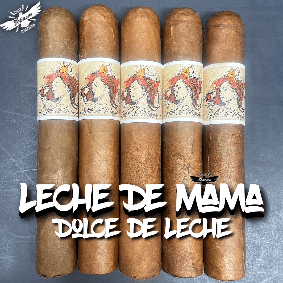 LECHE DE MAMA XQ is a full-bodied, med-strength 5x50 classic robusto. Wrapper is an ultra-buttery 10-year-aged Connecticut leaf. Fillers will remain a closely guarded secret. All tobaccos are aged between 4-10 years!